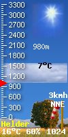 Partly cloudy, Dry Temperature: 12.8 °C Warmer 2.3 °C than last hour.   +2.3 °C/uur Humidity: 73%Decreased 10.0% since last hour. Dew Point: 8.1 °CIncreased 0.3 °C since last hour. Wind: S  1.8 km/uur Gust: 1.8 km/uur Barometer: 1023.7 hPaFalling 0.2  hPa/uur  Steady Rain Today: 0.0 mm UV Index: 1.2   Low